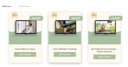 Die Webinare und Workbooks auf unserer externe Kursplattform von Ablefy.com